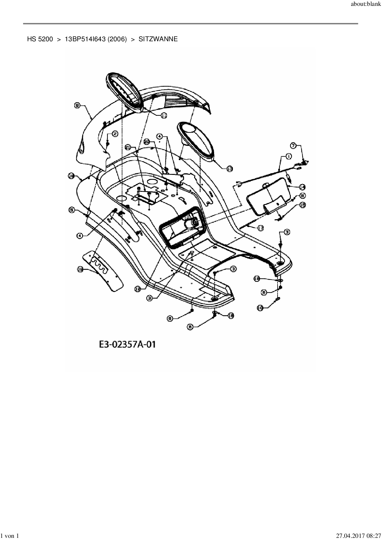 Ersatzteile für Rasentraktor Yard-Man HS 5200 aus der Zeichnung Sitzwanne: