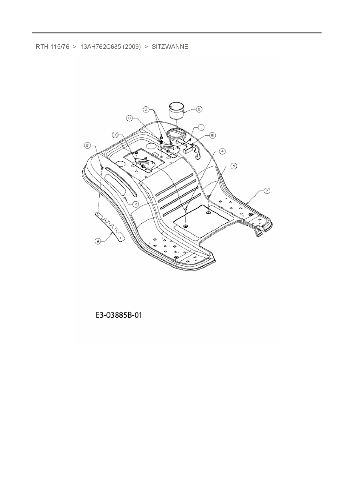 Ersatzteile für Rasentraktor Sunline RTH 115/76 aus der Zeichnung Sitzwanne: