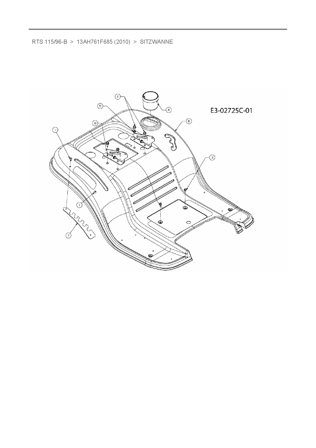 Ersatzteile für Rasentraktor Sunline RTS 115/96-B aus der Zeichnung Sitzwanne: