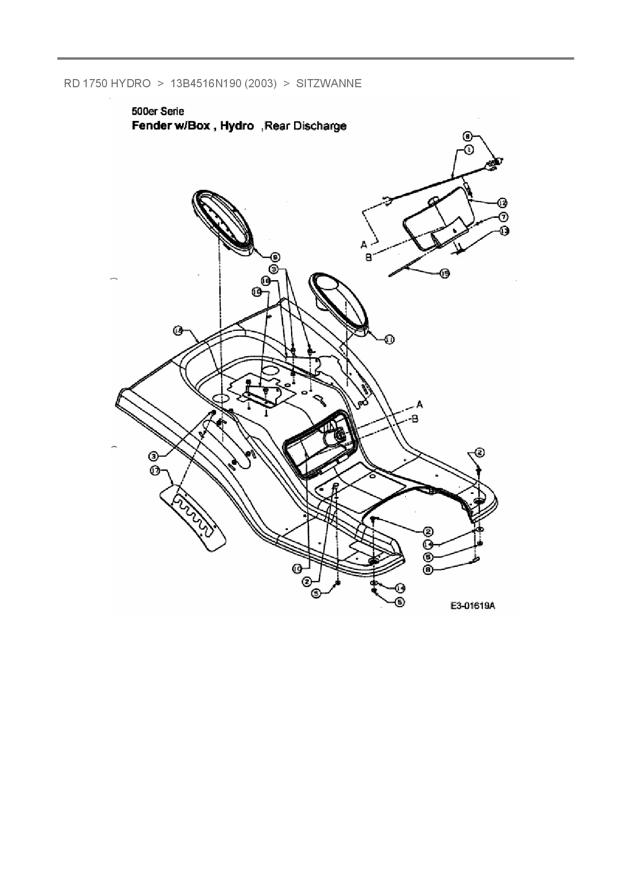 Ersatzteile für Rasentraktor White RD 1750 Hydro aus der Zeichnung Sitzwanne: