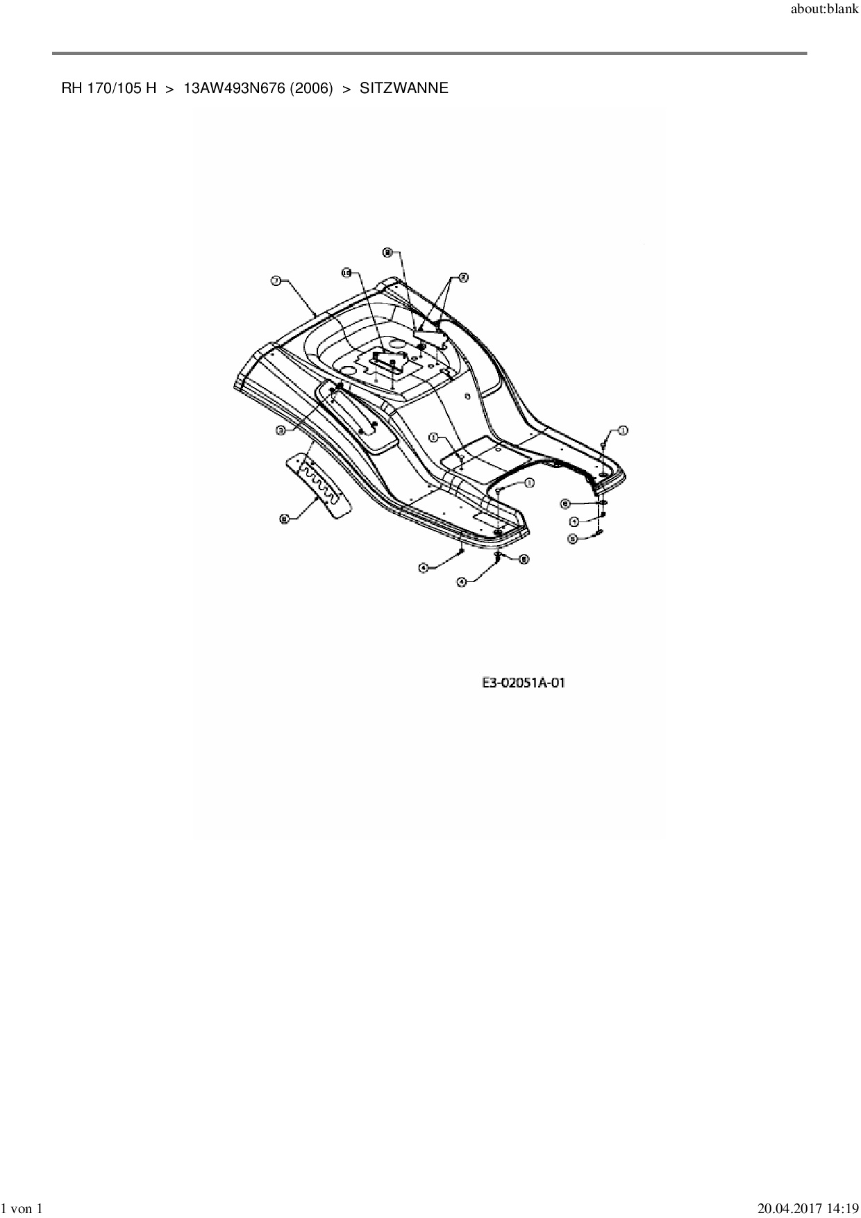 Ersatzteile für Rasentraktor MTD RH 170/105 H aus der Zeichnung Sitzwanne: