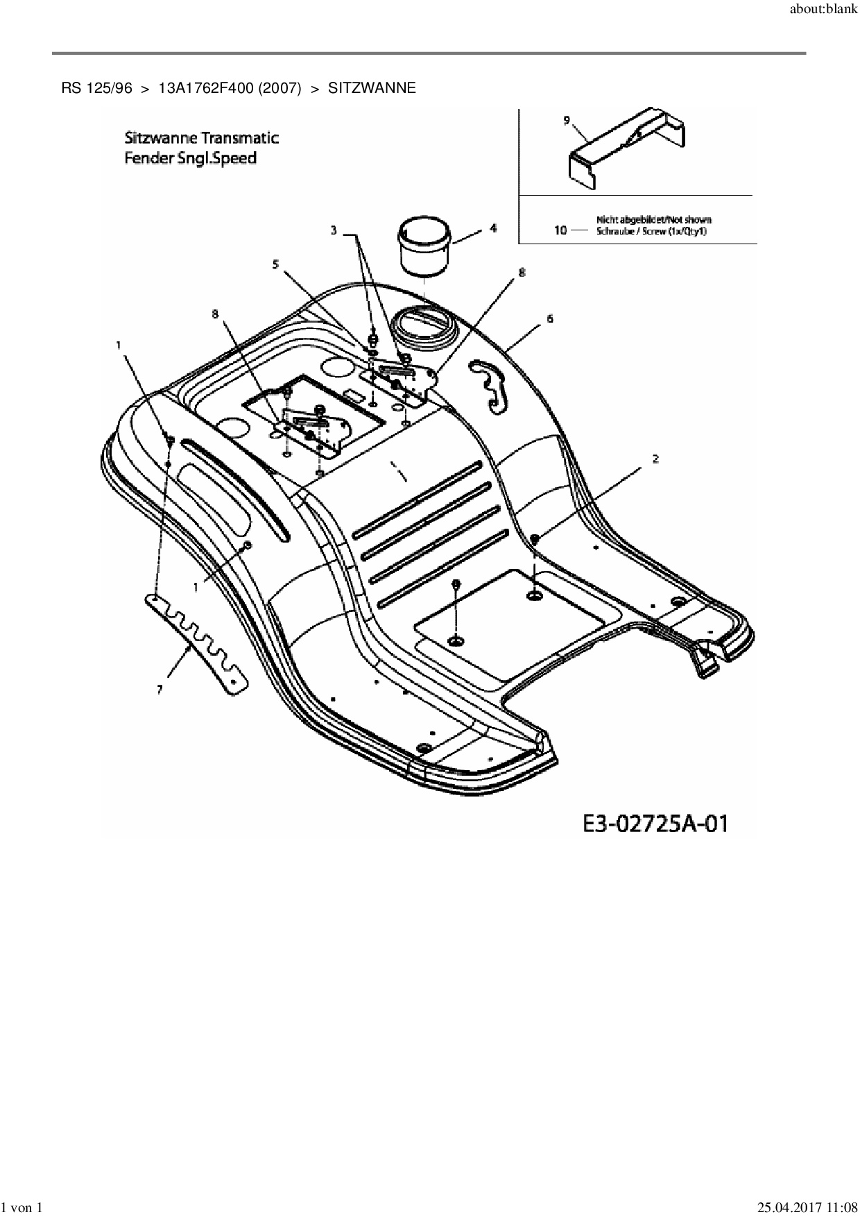 Ersatzteile für Rasentraktor MTD RS 125/96 aus der Zeichnung Sitzwanne: