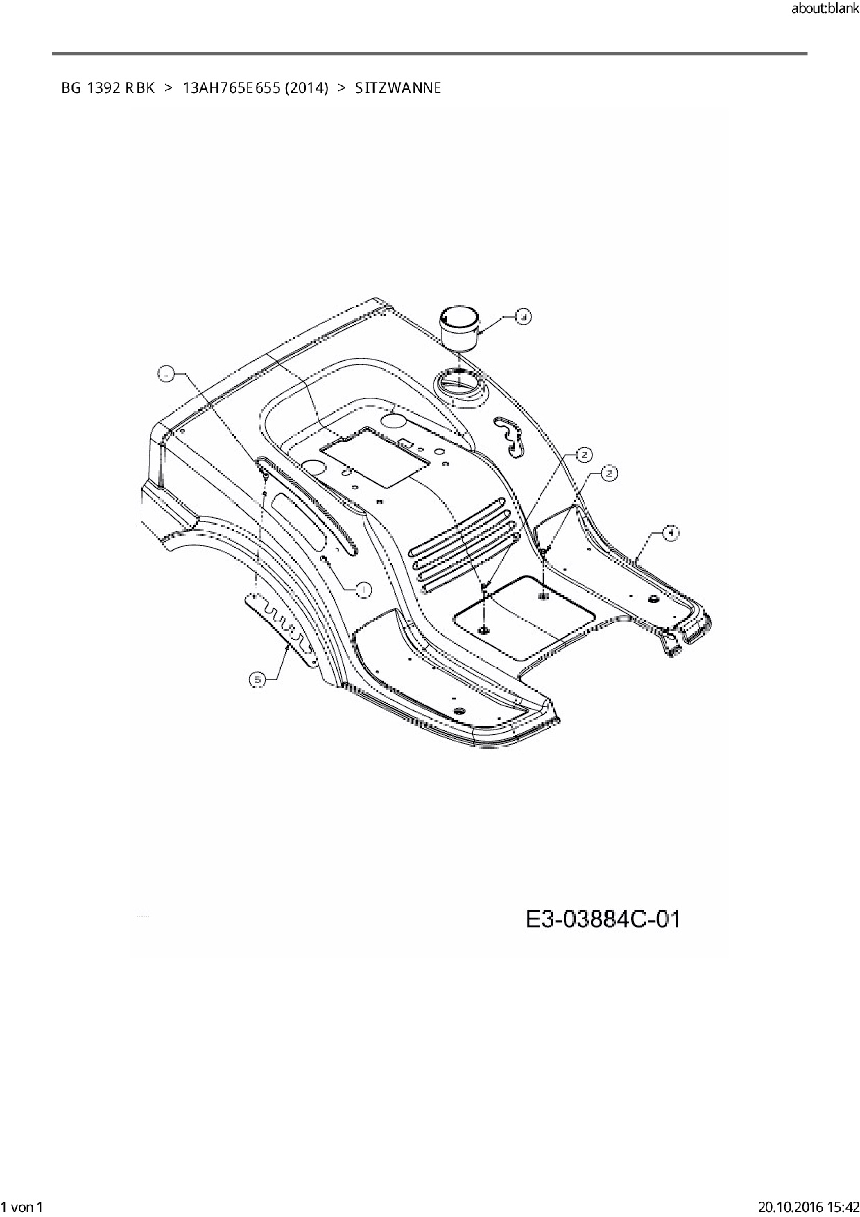 Ersatzteile für Rasentraktor Bestgreen BG 1392 RBK aus der Zeichnung Sitzwanne: