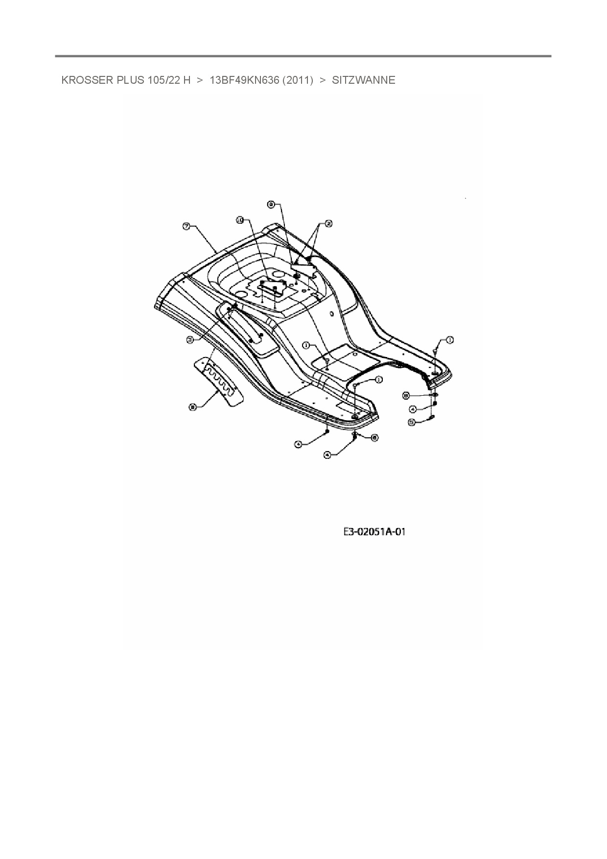 Ersatzteile für Rasentraktor Oleo-Mac Krosser Plus 105/22 H aus der Zeichnung Sitzwanne: