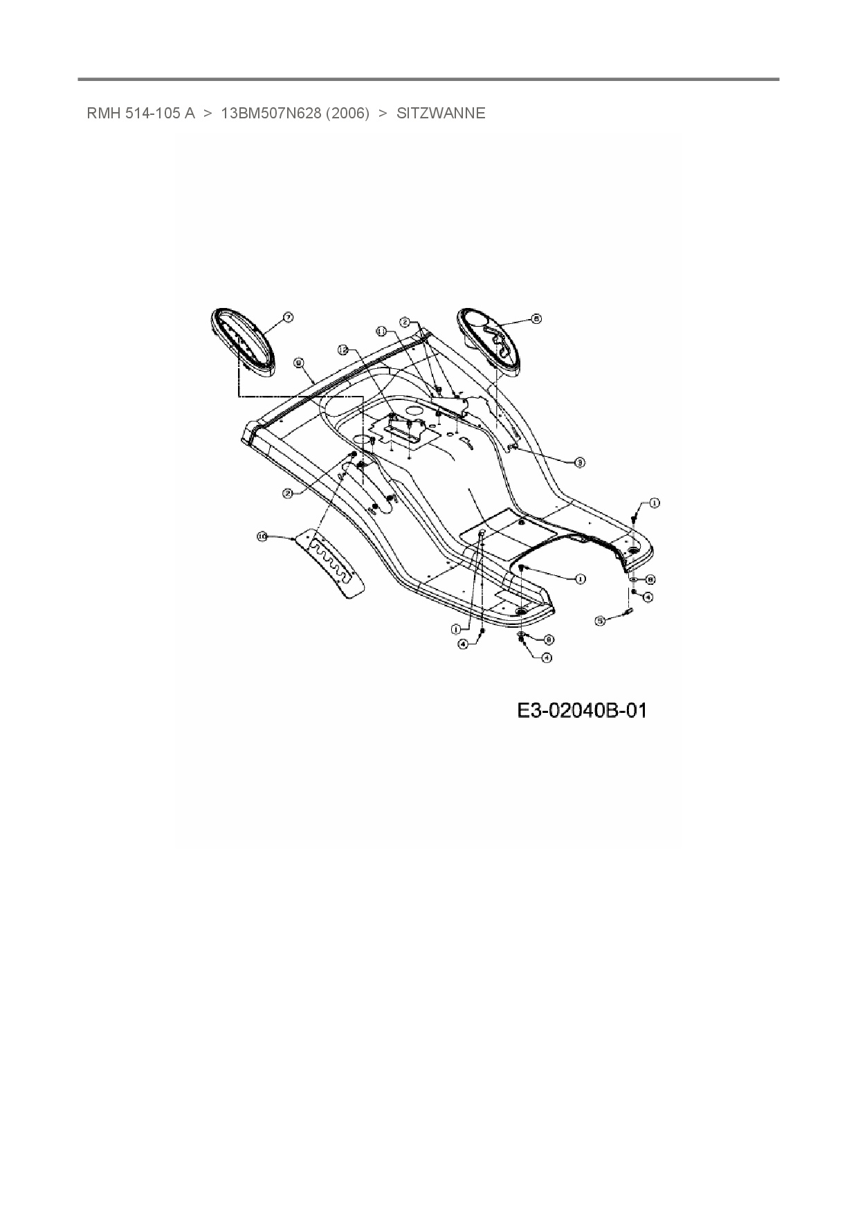 Ersatzteile für Rasentraktor Raiffeisen RMH 514-105 A aus der Zeichnung Sitzwanne: