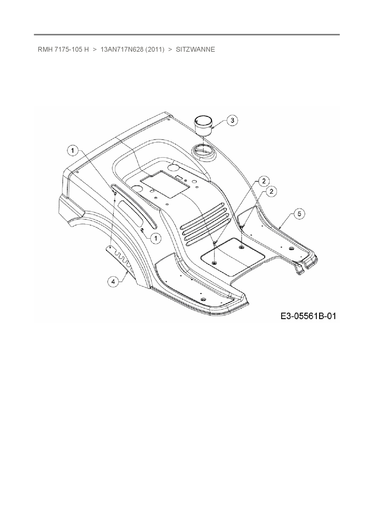 Ersatzteile für Rasentraktor Raiffeisen RMH 7175-105 H aus der Zeichnung Sitzwanne: