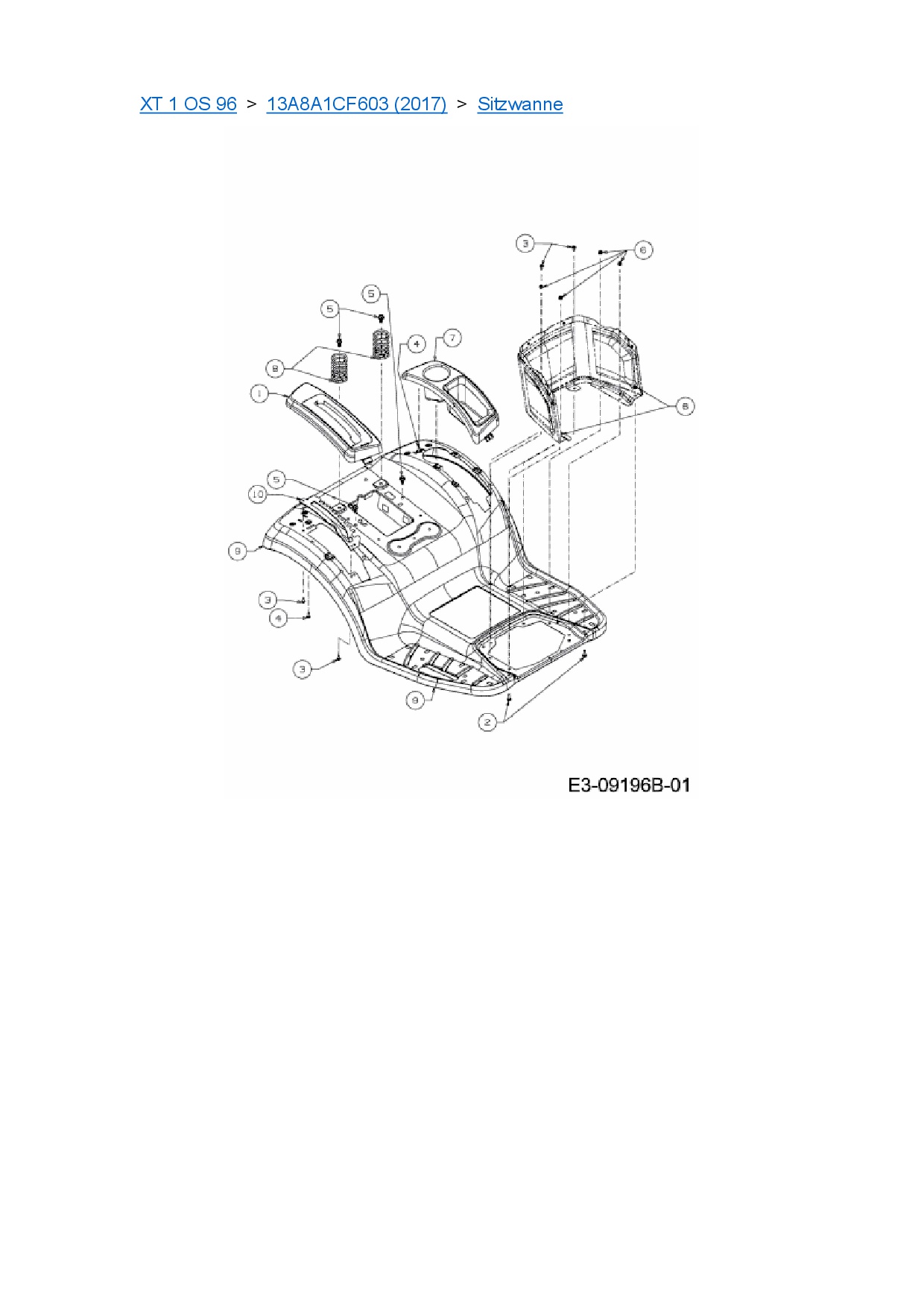 Ersatzteile für Rasentraktor Cub Cadet XT 1 OS 96 aus der Zeichnung Sitzwanne: