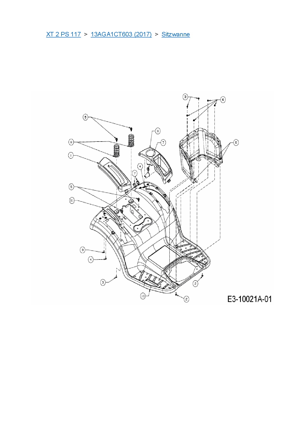 Ersatzteile für Rasentraktor Cub Cadet XT 2 PS 117 aus der Zeichnung Sitzwanne: