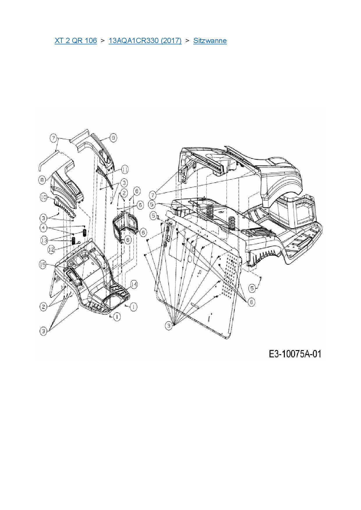 Ersatzteile für Rasentraktor Cub Cadet XT 2 QR 106 aus der Zeichnung Sitzwanne: