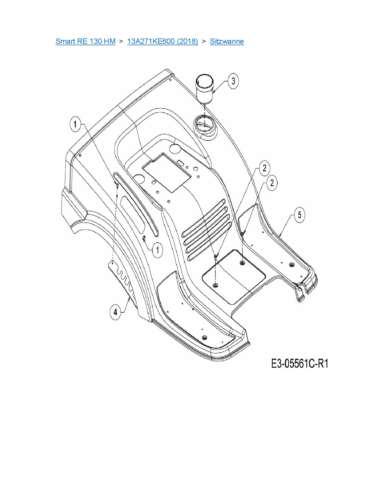 Ersatzteile für Rasentraktor MTD Smart RE 130 HM aus der Zeichnung Sitzwanne: