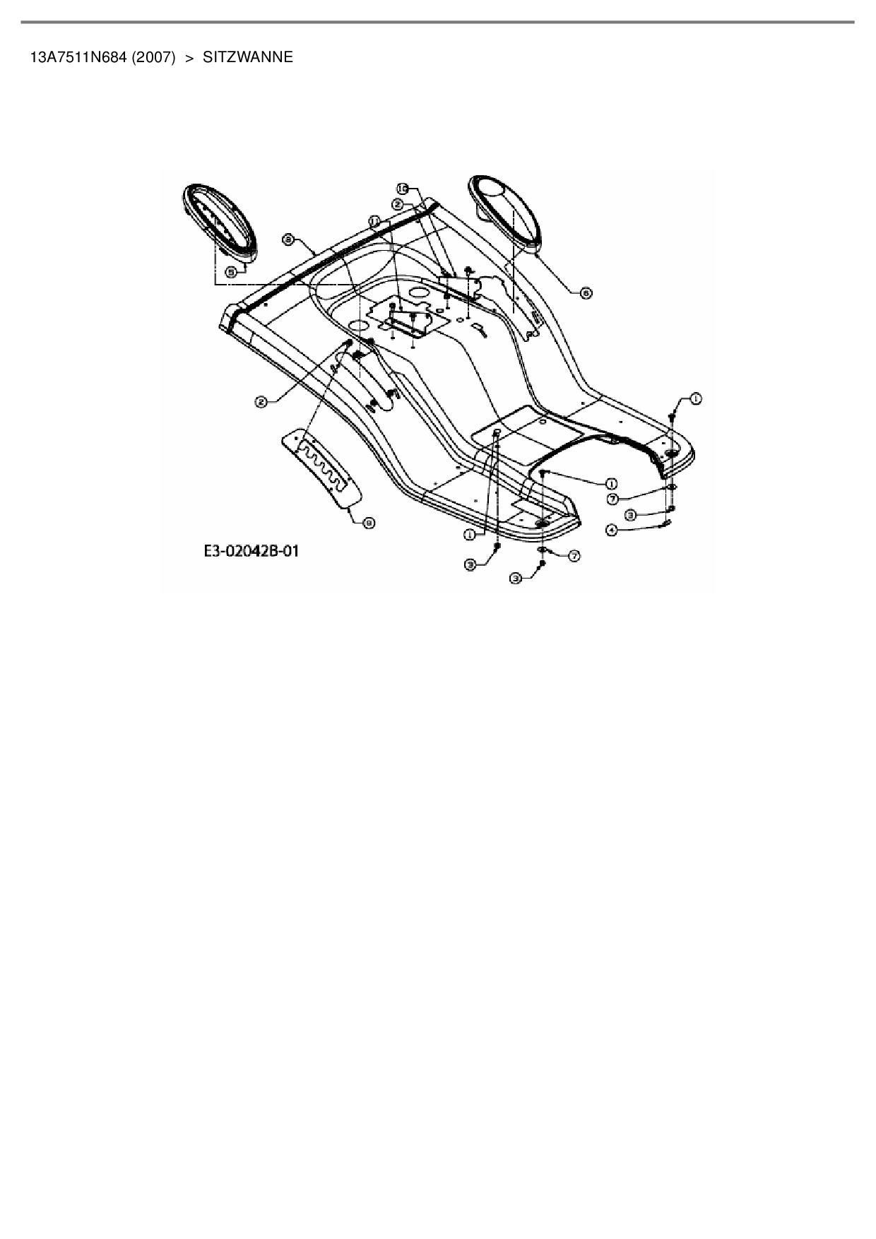 Ersatzteile für Rasentraktor Bolens BL 200/105 H aus der Zeichnung Sitzwanne: