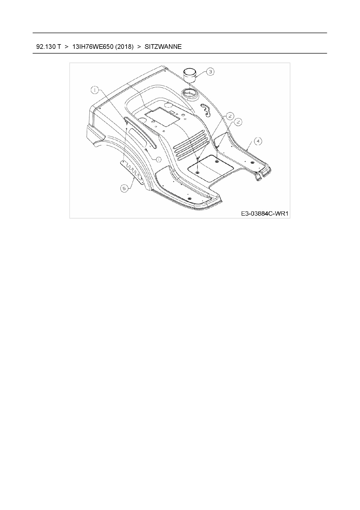 Ersatzteile für Rasentraktor Wolf-Garten 92.130 T aus der Zeichnung Sitzwanne: