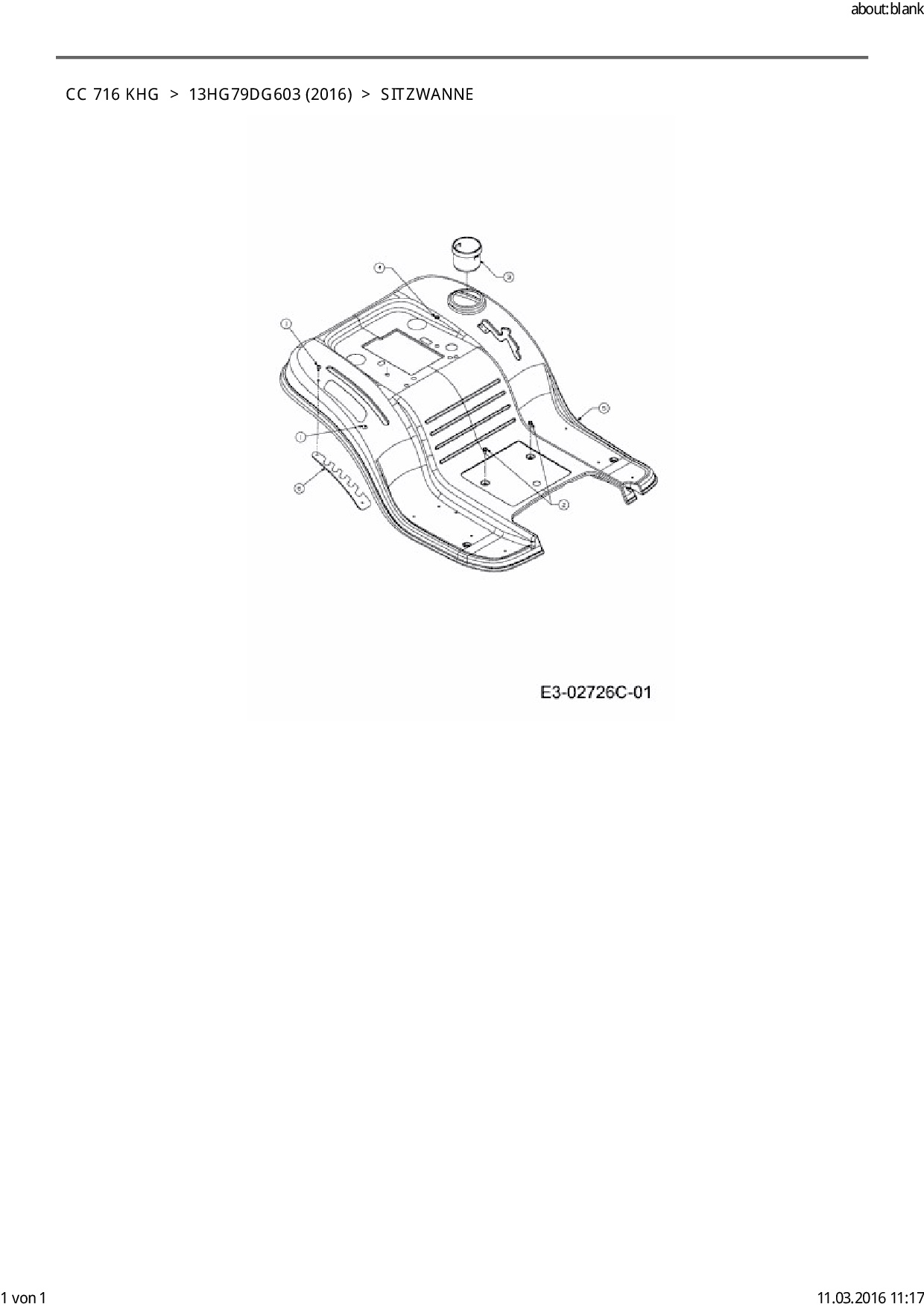 Ersatzteile für Rasentraktor Cub Cadet CC 716 KHG aus der Zeichnung Sitzwanne:
