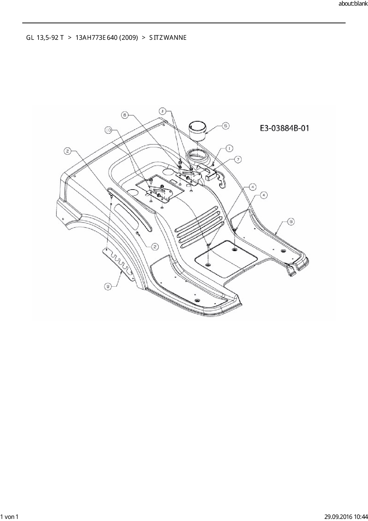 Ersatzteile für Rasentraktor Gartenland GL 13,5-92 T aus der Zeichnung Sitzwanne: