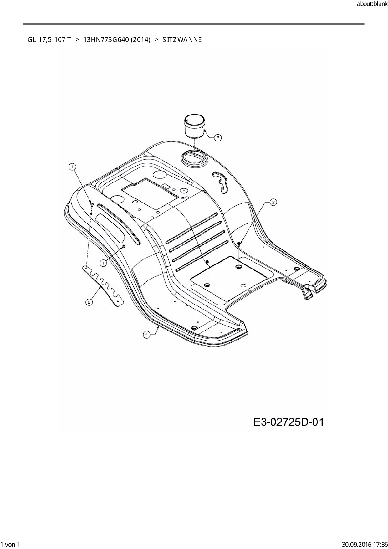 Ersatzteile für Rasentraktor Gartenland GL 17,5-107 T aus der Zeichnung Sitzwanne: