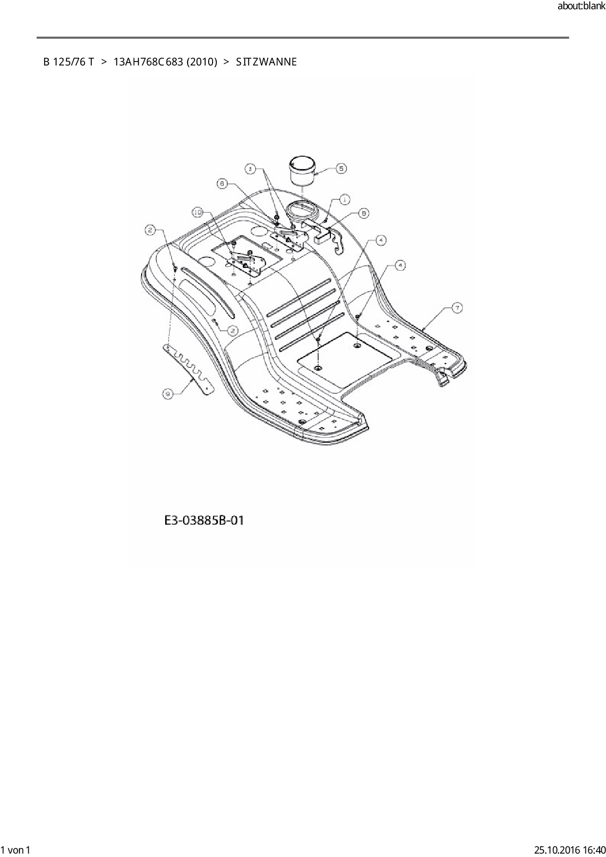 Ersatzteile für Rasentraktor Black-Line B 125/76 T aus der Zeichnung Sitzwanne: