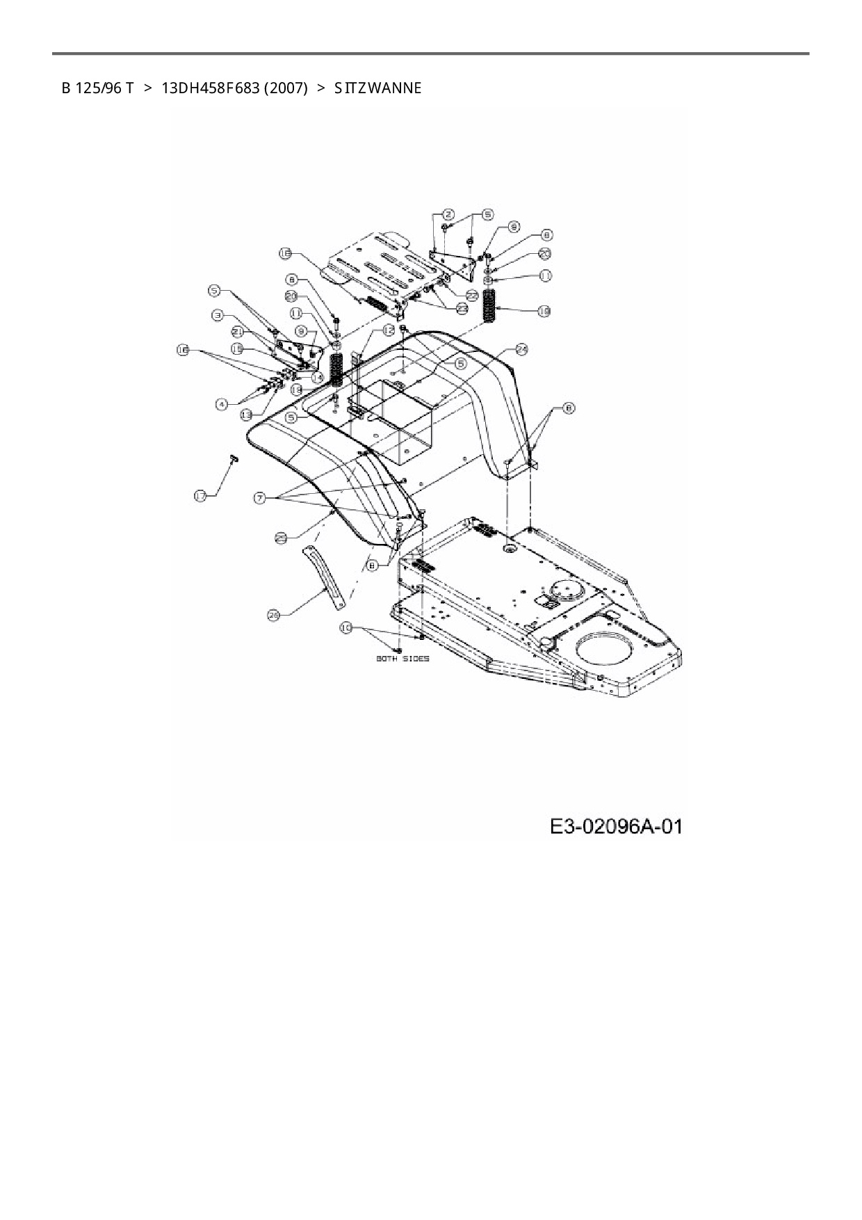 Ersatzteile für Rasentraktor Black-Line B 125/96 T aus der Zeichnung Sitzwanne: