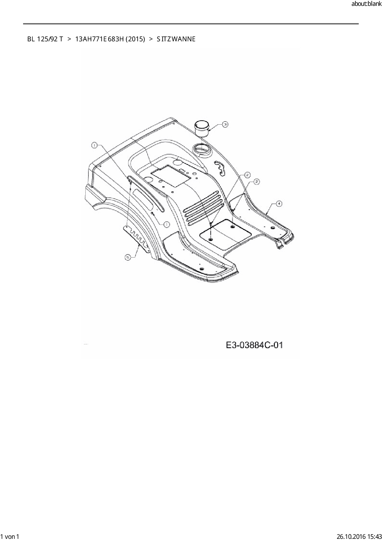 Ersatzteile für Rasentraktor Black-Line BL 125/92 T aus der Zeichnung Sitzwanne: