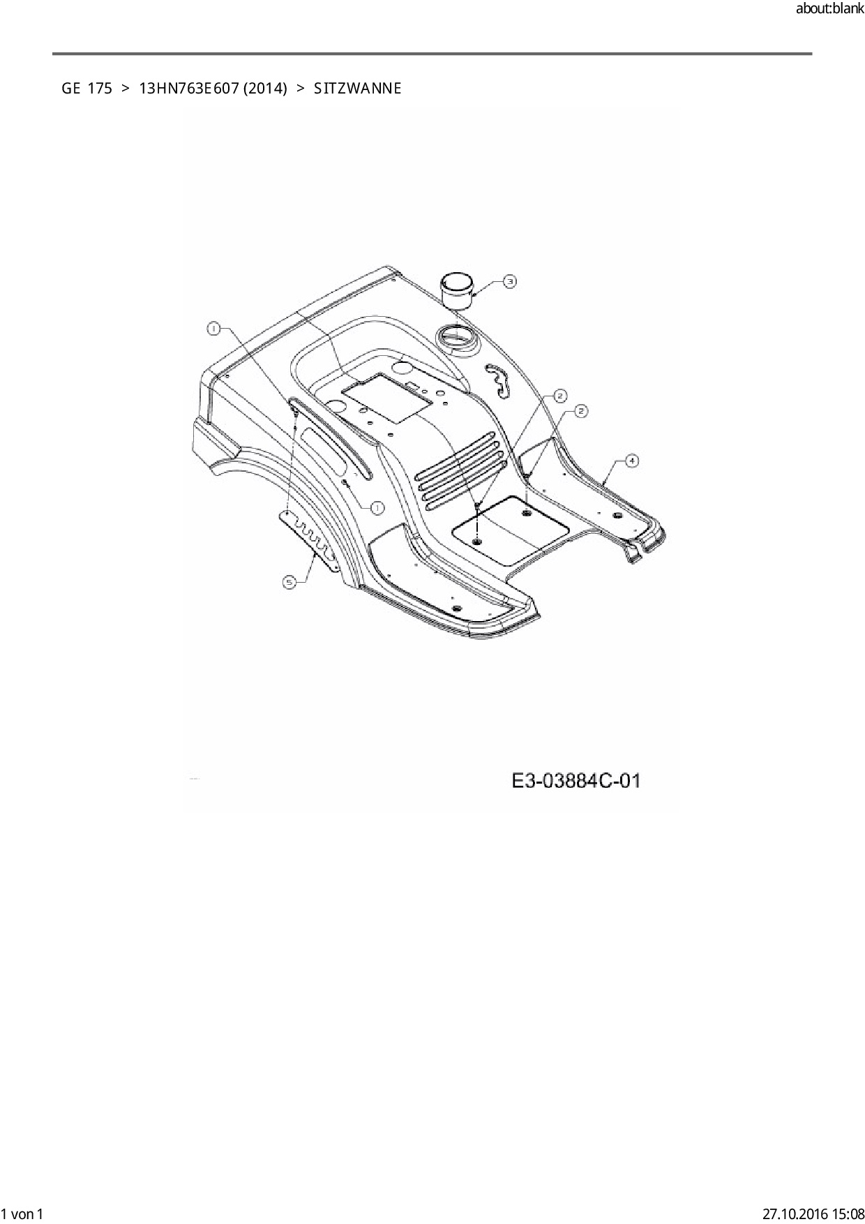 Ersatzteile für Rasentraktor Blisar GE 175 aus der Zeichnung Sitzwanne: