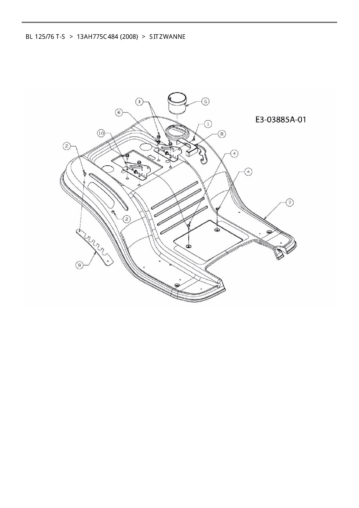 Ersatzteile für Rasentraktor Bolens BL 125/76 T-S aus der Zeichnung Sitzwanne:
