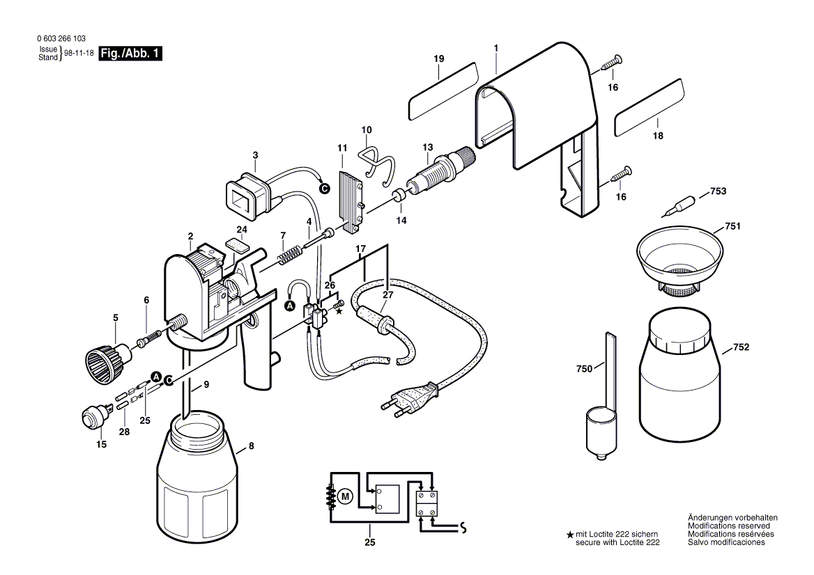 Zeichnungen von Bosch Spritzpistole PSP 60 mit der Geräte-Artikelnummer 0 603 266 103