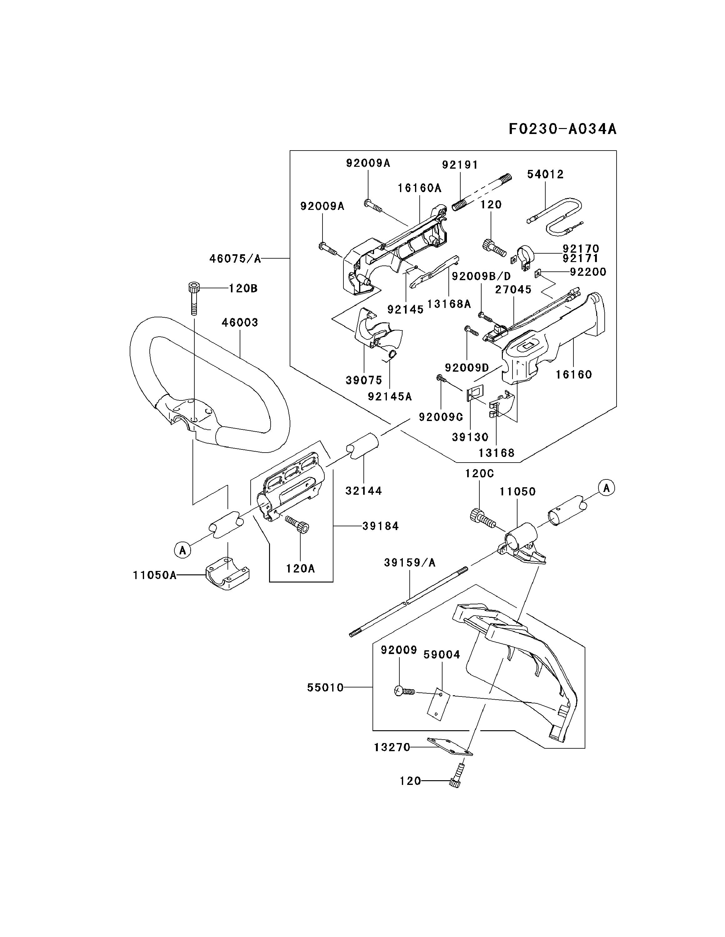 Hier finden Sie alle Ersatzteile von Kawasaki Freischneider HA034F-AS01 (KBL34A) aus der Zeichnung Stange/Griff/Schutz: