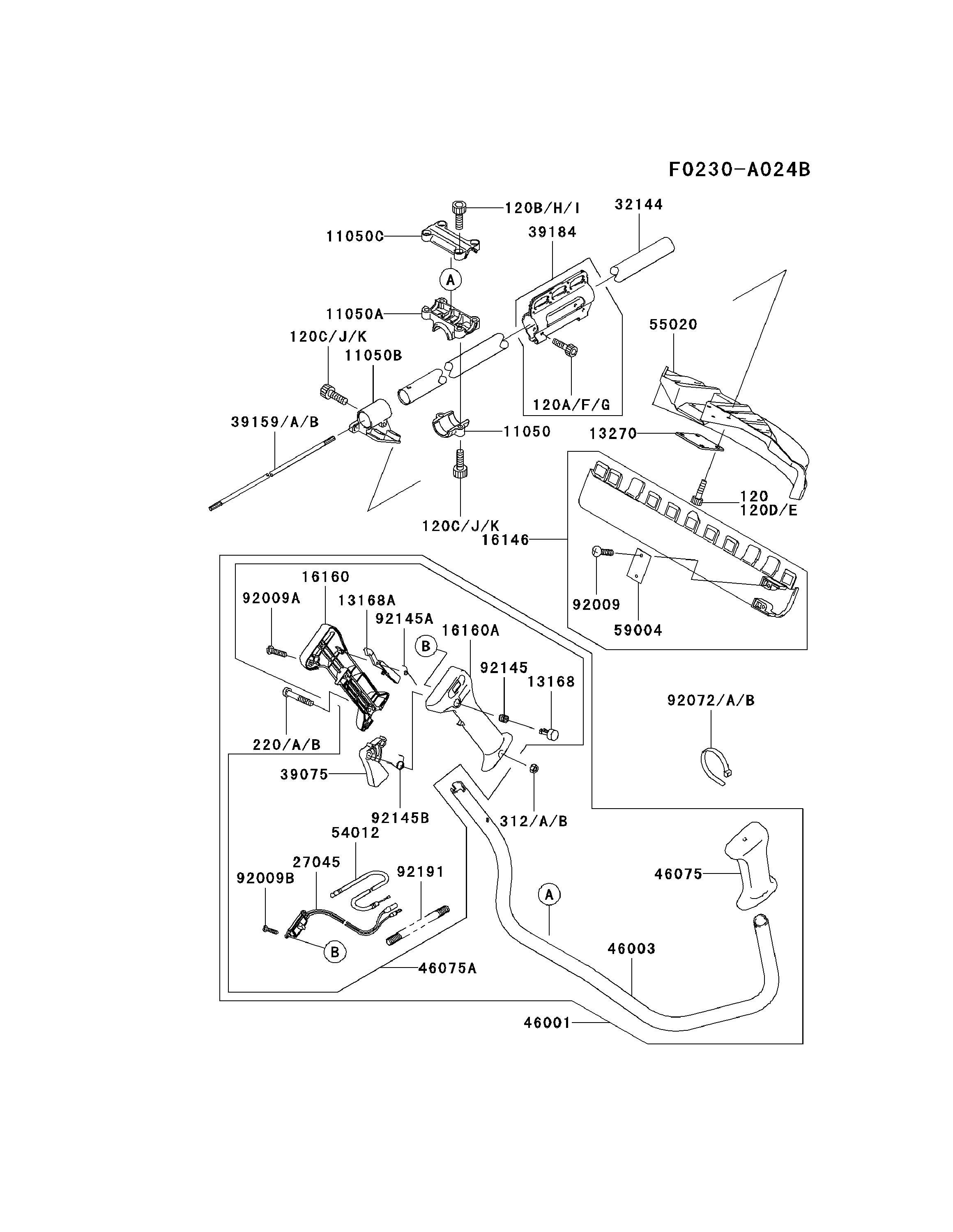 Hier finden Sie alle Ersatzteile von Kawasaki Freischneider HA034F-AT25 (KBH34A) aus der Zeichnung Stange/Griff/Schutz: