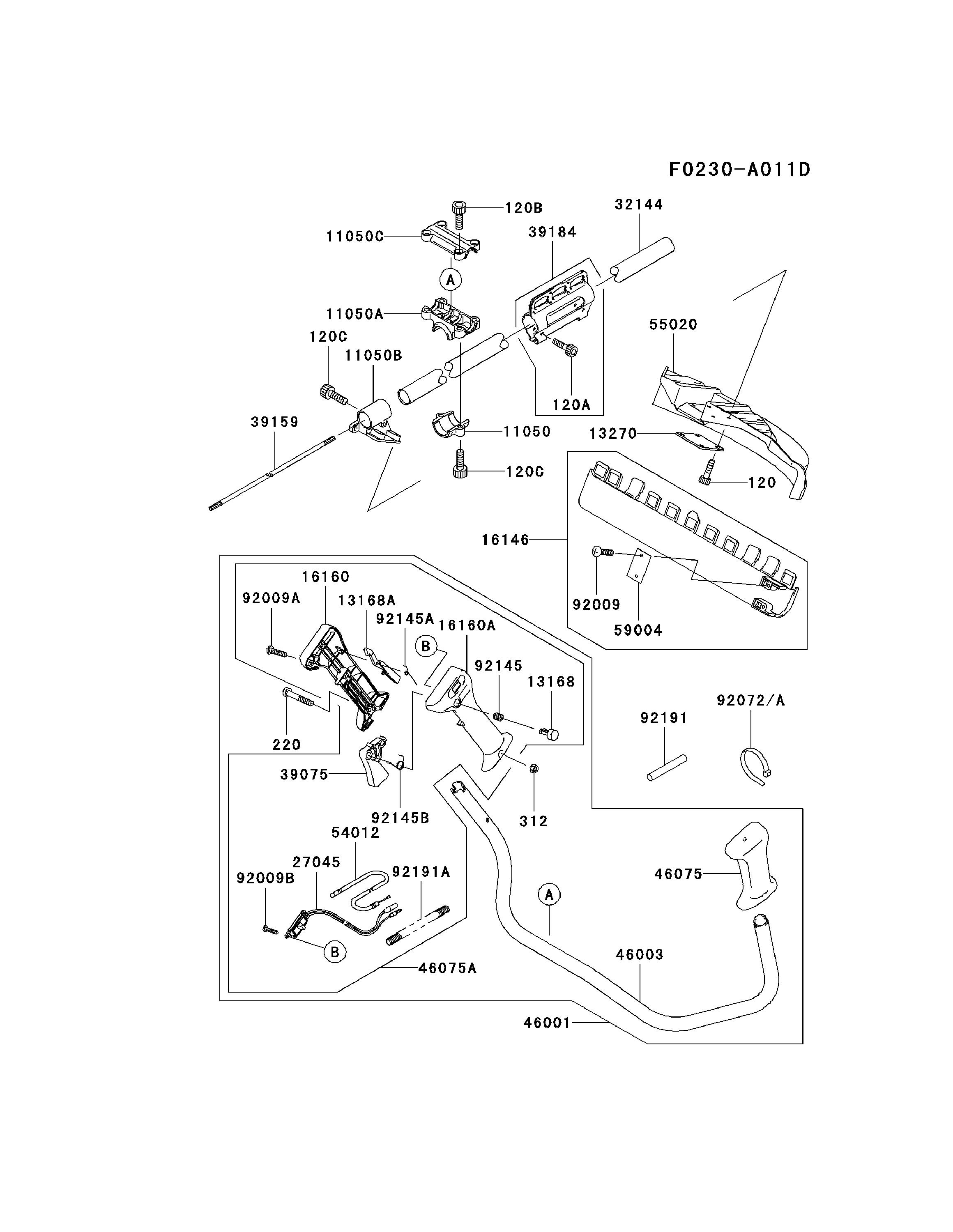 Hier finden Sie alle Ersatzteile von Kawasaki Freischneider HA043F-AS53 (KBH43A) aus der Zeichnung Stange/Griff/Schutz: