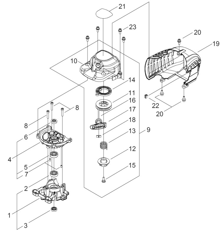 Zeichnung von shindaiwa Heckenscheren DH2200ST Starter, Kurbelgehäuse: