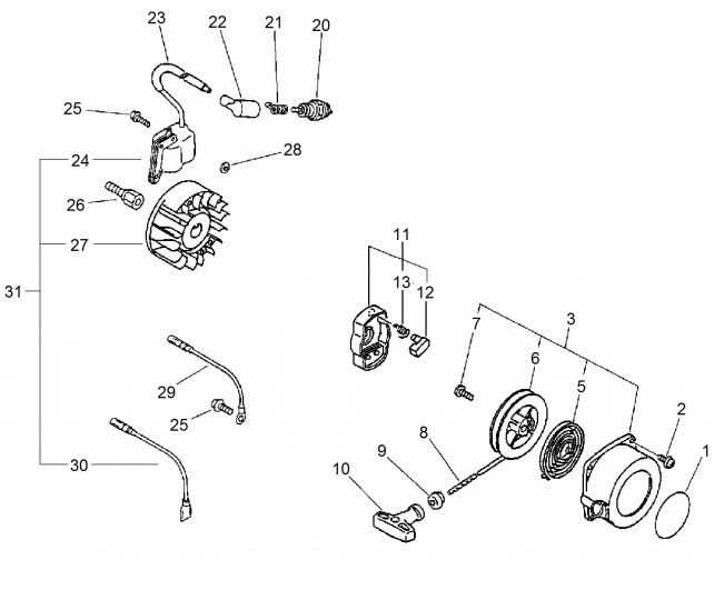 Zeichnung von ECHO Laubbläser, tragbar PB-2405 Starter Zündung bis S.-Nr.: 005672: