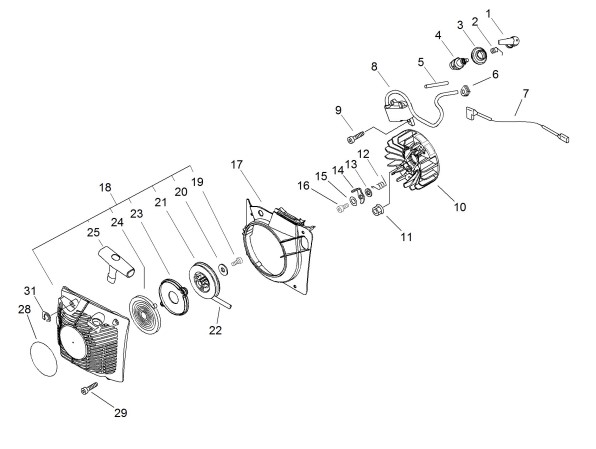 Zeichnung von shindaiwa Motorsägen 598 Starter, Zündung: