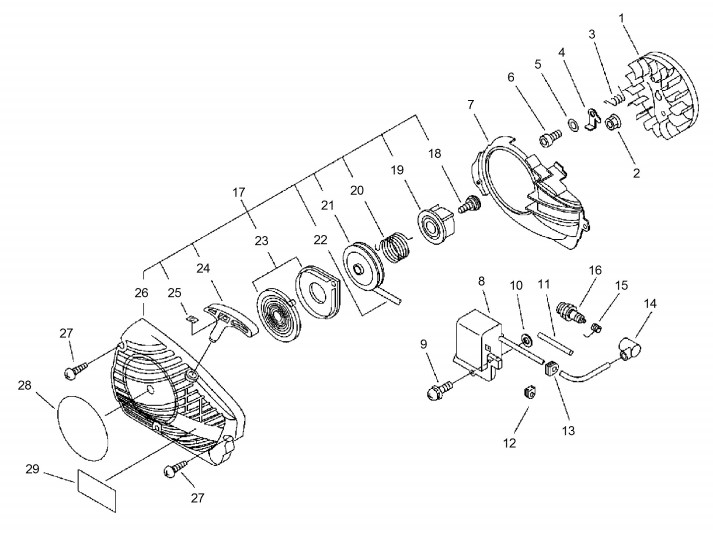 Zeichnung von ECHO Motorsägen CS-270WES CS-270WES bis S.-Nr: 36006130 Starter, Zündung: