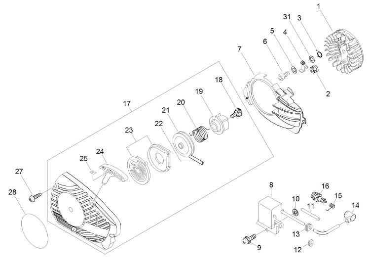 Zeichnung von ECHO Motorsägen CS-280WESC CS-280WESC ab S.-Nr.: 37006106 Starter, Zündung: