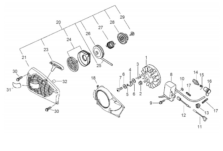 Zeichnung von ECHO Motorsägen CS-350TES CS-350TES bis S.-Nr.: 36035770 Starter, Zündung:
