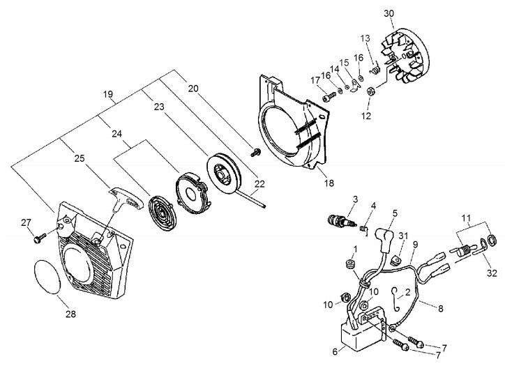 Zeichnung von ECHO Motorsägen CS-3501 CS-3501 bis S.-Nr: 36002110 Starter, Zündung: