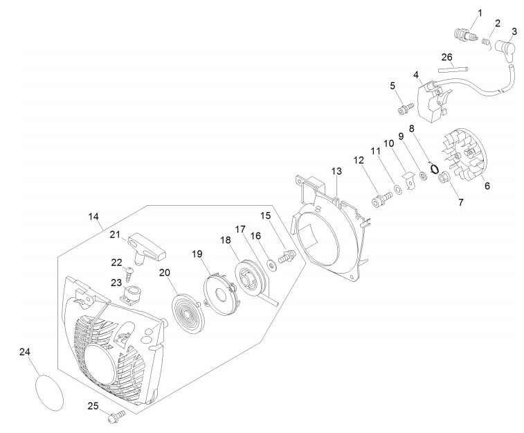 Zeichnung von ECHO Motorsägen CS-450 CS-450 ab S.-Nr.: 37017496 Starter, Zündung:
