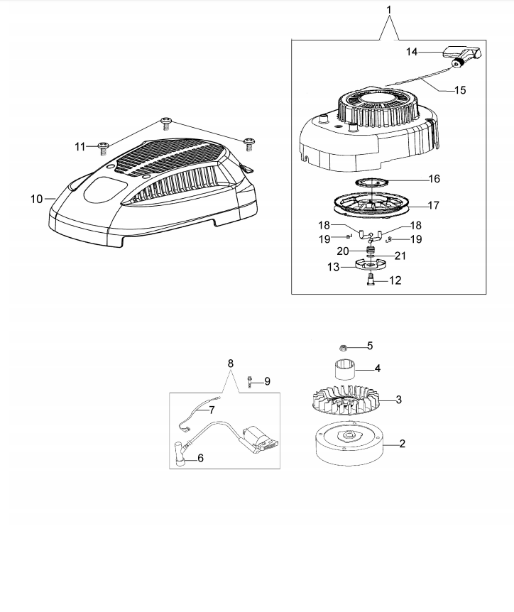 Hier finden Sie alle Ersatzteile für Oleo-Mac Rasenmäher G 53 TK (K650) aus der Zeichnung für Starter und Schwungrad: