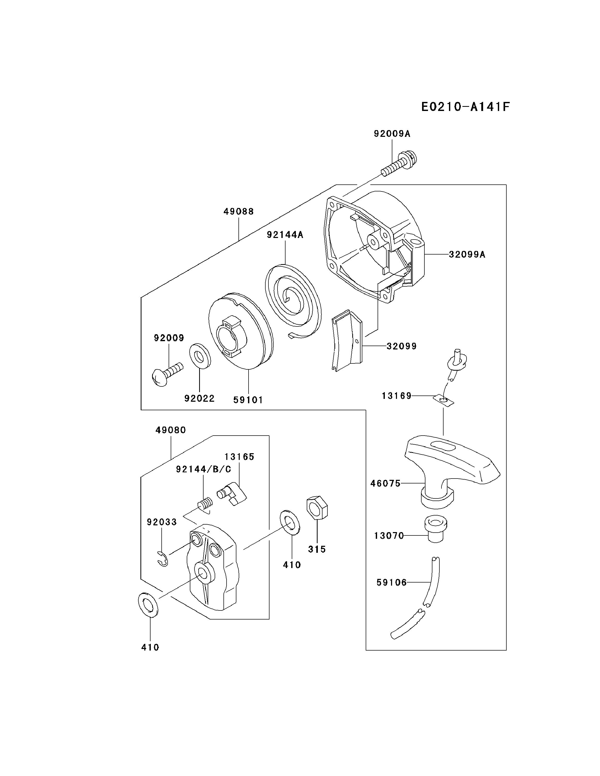 Hier finden Sie alle Ersatzteile von Kawasaki Laubbläser HG400A-AS50 (KRB400A) aus der Zeichnung Starter:
