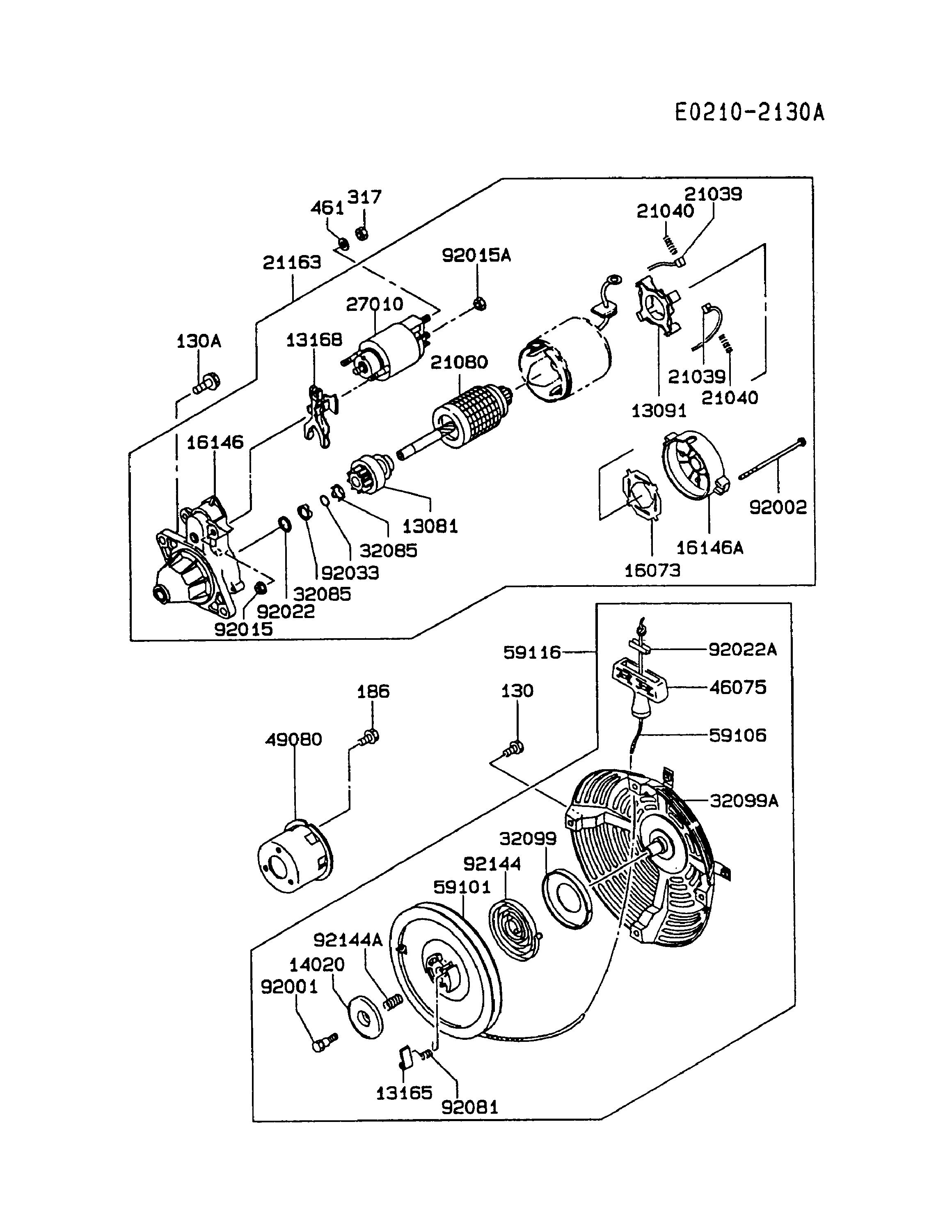 Hier finden Sie alle Ersatzteile von Kawasaki Generatoren GER50A-AS59 (GE4500A) aus der Zeichnung Starter: