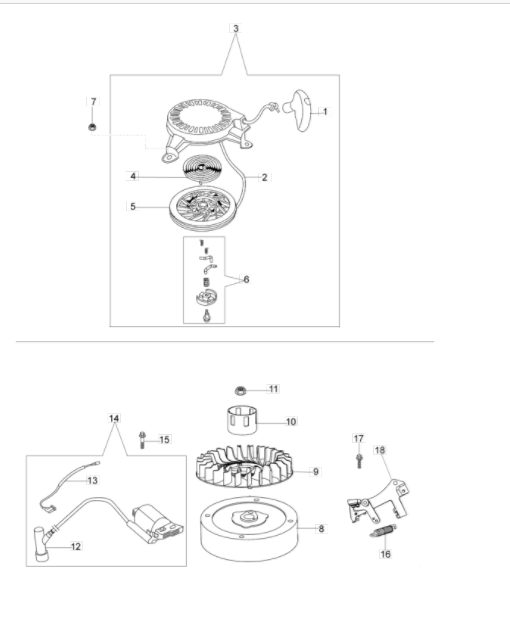 Hier finden Sie alle Ersatzteile für EFCO Rasenmäher LR 44 PK (K40) aus der Zeichnung Starter und Schwungrad: