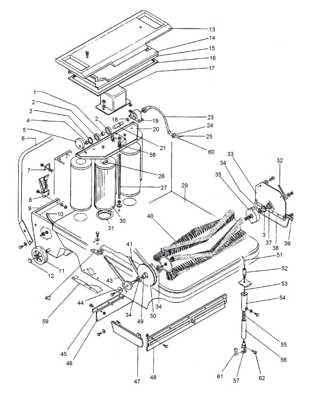 Zeichnung von Erco Kehr- und Saugmaschinen Handgeführte Kehr- und Saugmaschinen ER-8700HO Staubfilter, Hauptkehrwalze:
