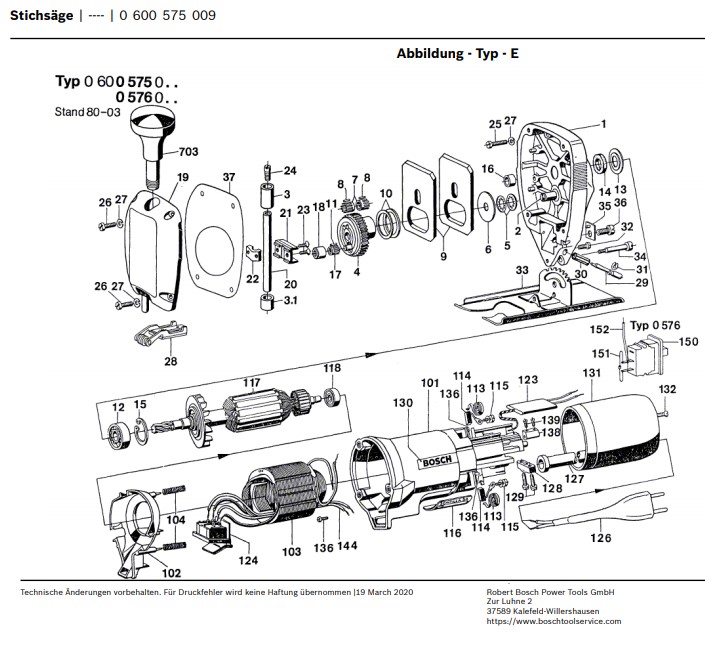 Hier finden Sie alle Ersatzteile für Bosch Stichsäge 0 600 575 009: