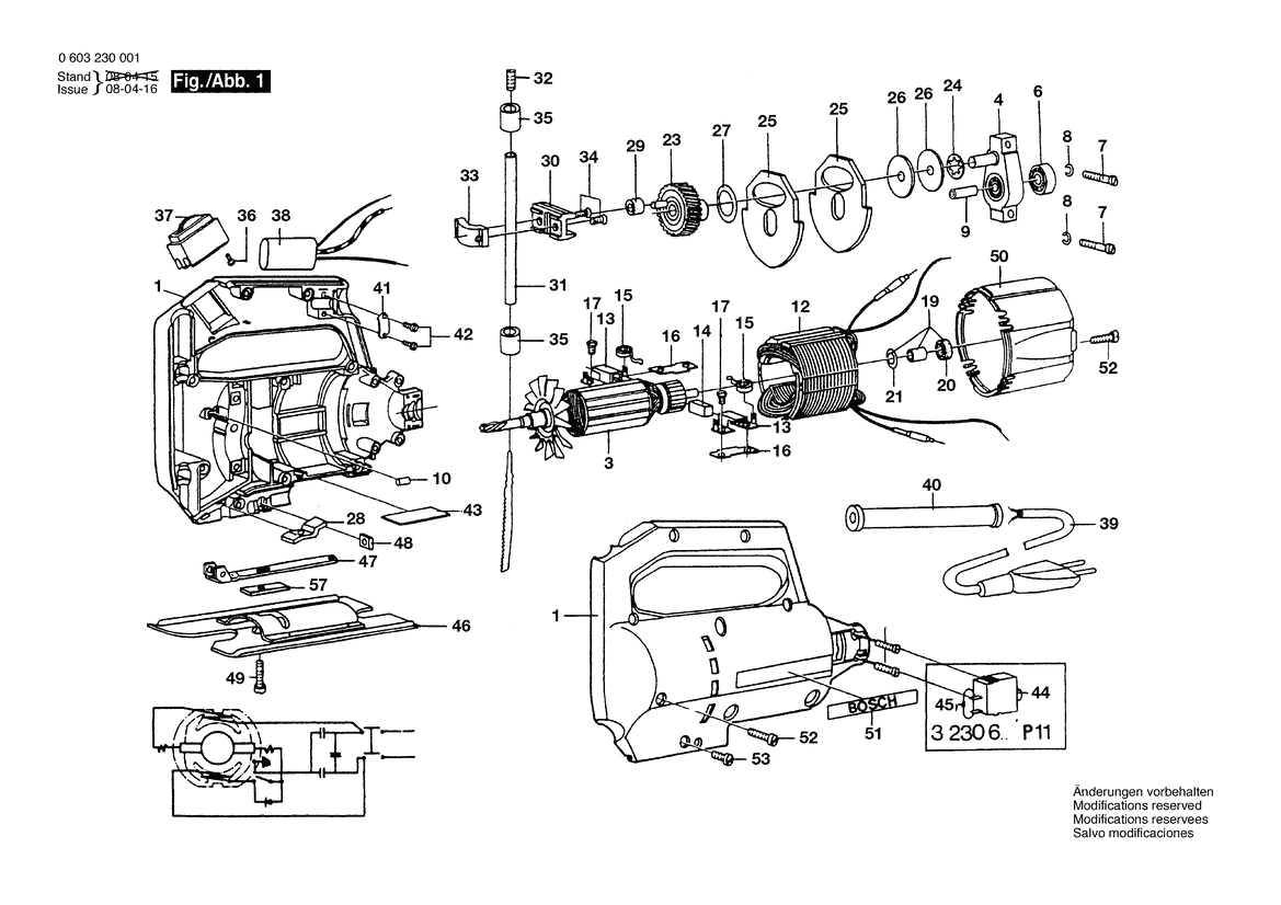 Zeichnung Sollten Sie Fragen zu einem Ersatzteil vom Bosch Stichsäge P 10 | 240 V | 036 - GB (0 603 230 046) haben, können Sie uns gerne eine E-Mail (mit einem Foto vom Typenschild Ihres Gerätes) schreiben oder eine Ersatzteilanfrage stellen.