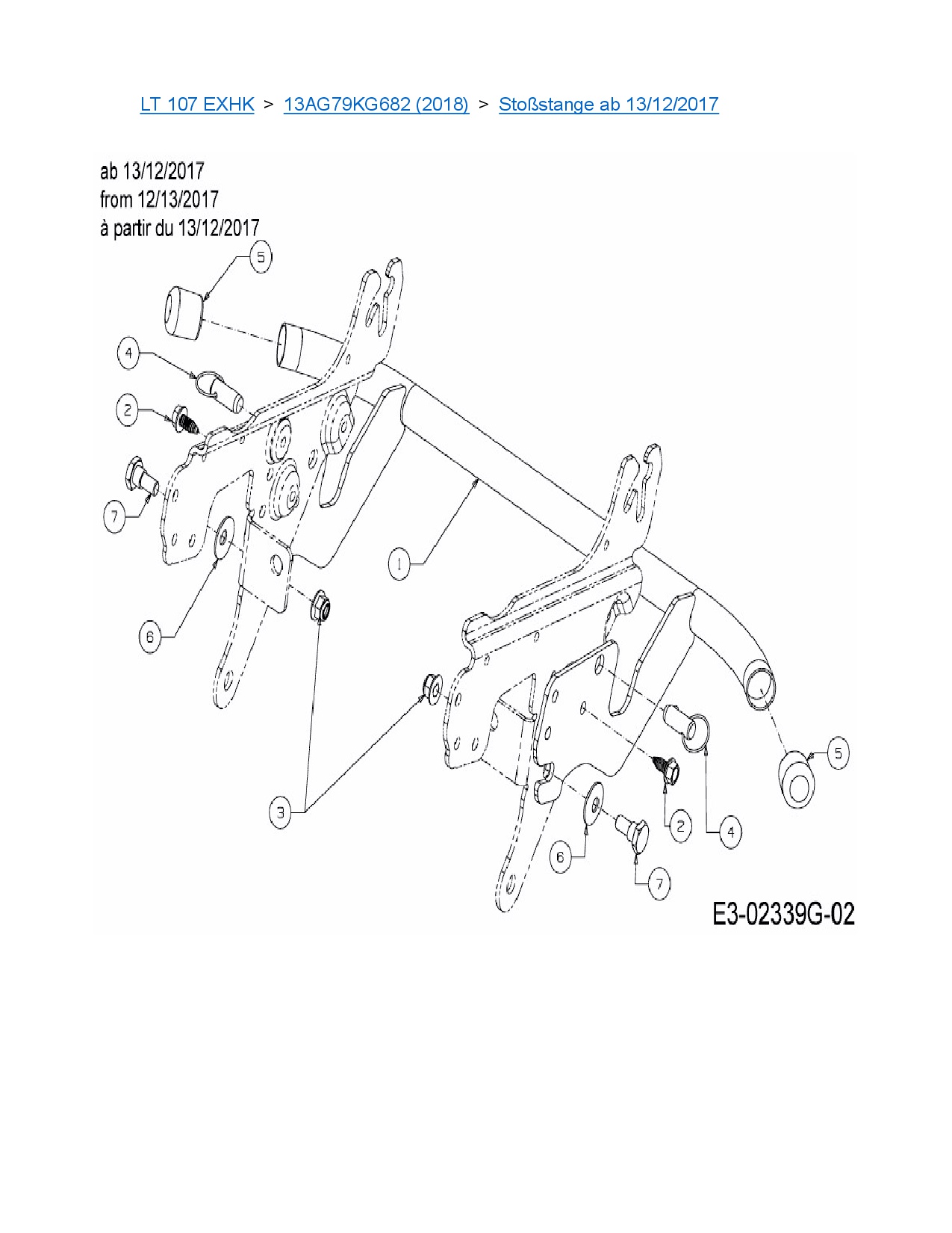 Ersatzteile für Rasentraktor MTD LT 107 EXHK aus der Zeichnung Stoßstange ab 13/12/2017: