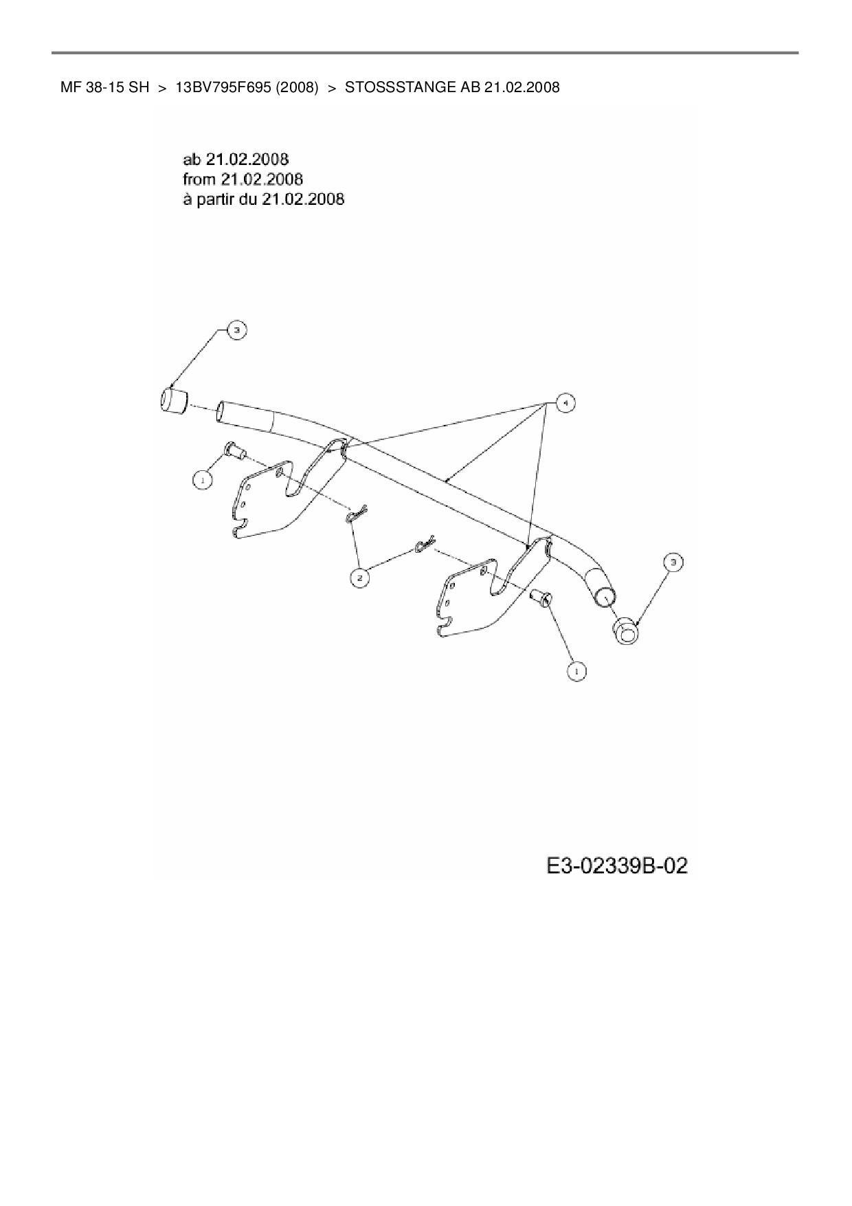 Ersatzteile für Rasentraktor Massey Ferguson MF 38-15 SH aus der Zeichnung Stoßstange ab 21.02.2008: