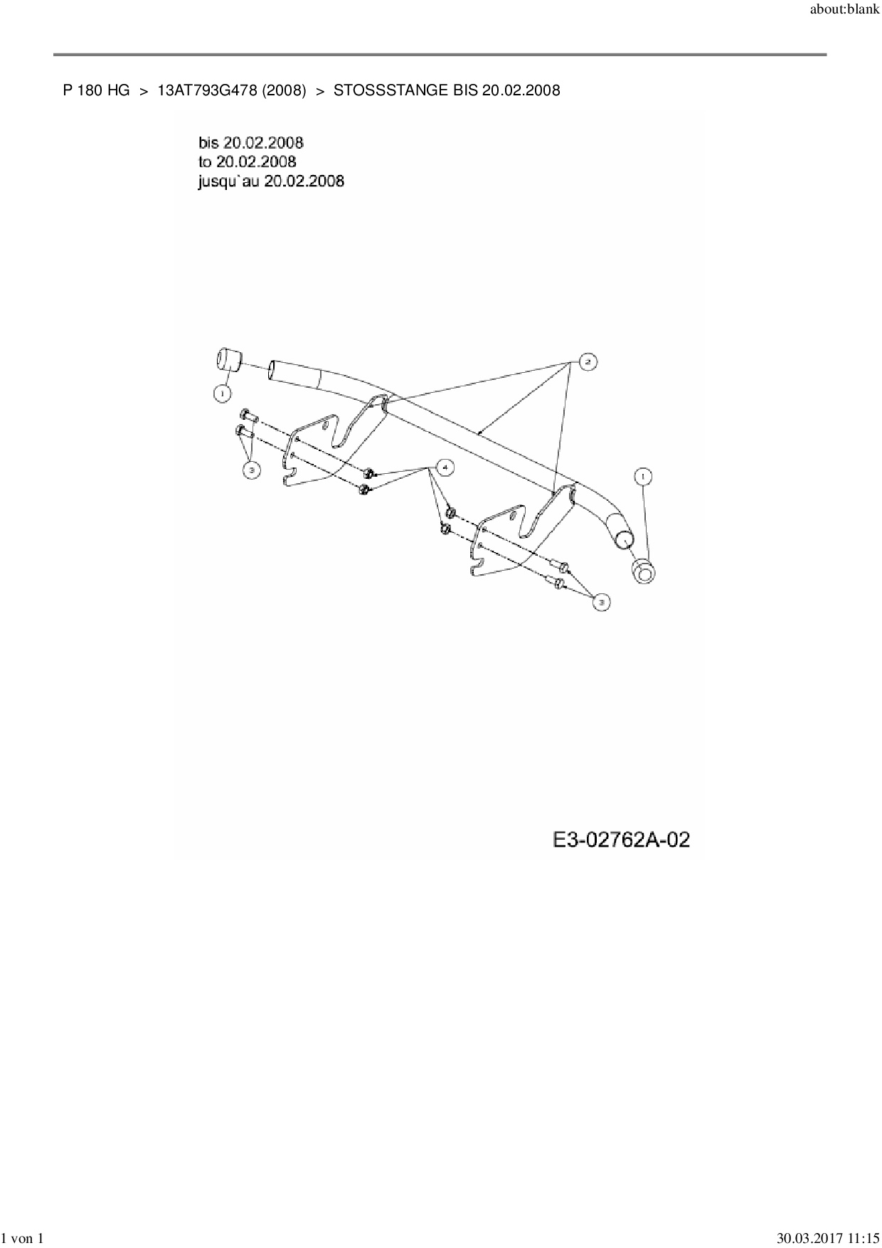 Ersatzteile für Rasentraktor MTD P 180 HG aus der Zeichnung Stoßstange bis 20.02.2008: