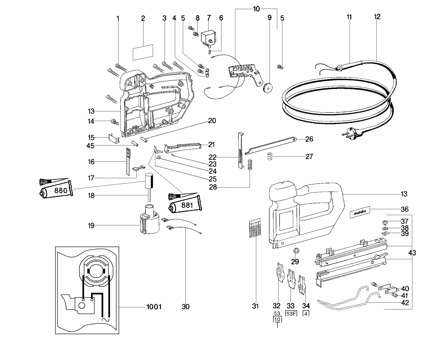 Zeichnung 1 Sollten Sie Fragen zu einem Ersatzteil von Metabo TA E 2019 Tacker 602019190 haben, können Sie uns gerne eine E-Mail (mit einem Foto vom Typenschild Ihres Gerätes) schreiben oder eine Ersatzteilanfrage stellen.
