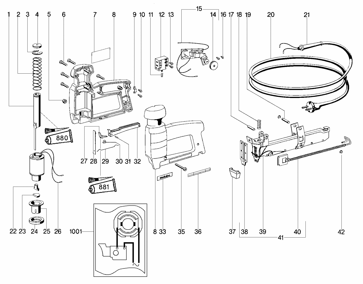 Zeichnung 1 Sollten Sie Fragen zu einem Ersatzteil von Metabo TA E 3030 Tacker 603030193 haben, können Sie uns gerne eine E-Mail (mit einem Foto vom Typenschild Ihres Gerätes) schreiben oder eine Ersatzteilanfrage stellen.