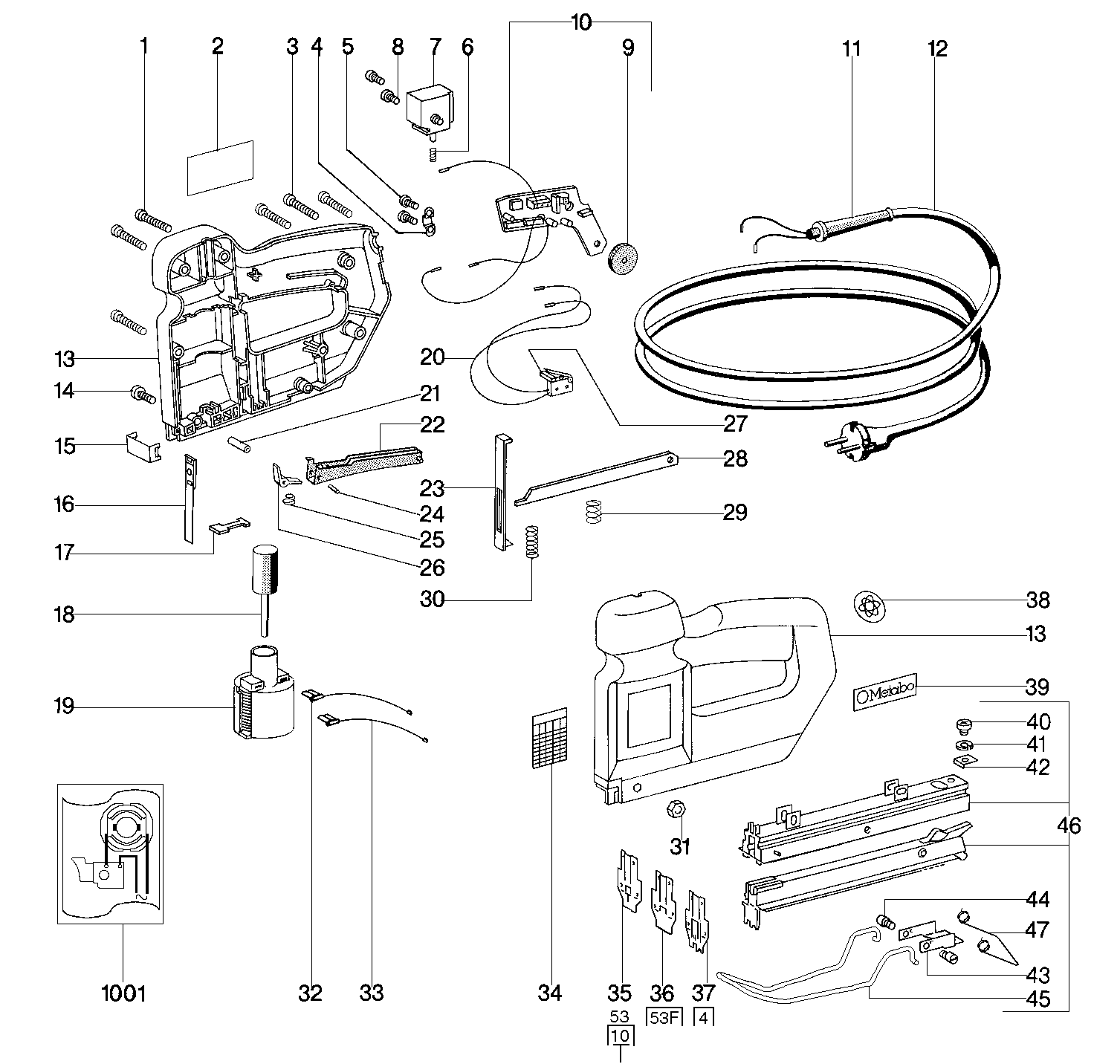 Zeichnung 1 Sollten Sie Fragen zu einem Ersatzteil von Metabo TA M 2020 Tacker 602020190 haben, können Sie uns gerne eine E-Mail (mit einem Foto vom Typenschild Ihres Gerätes) schreiben oder eine Ersatzteilanfrage stellen.