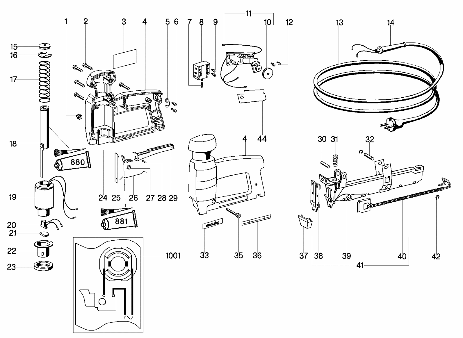 Zeichnung 1 Sollten Sie Fragen zu einem Ersatzteil von Metabo TA M 3034 Tacker 603034181 haben, können Sie uns gerne eine E-Mail (mit einem Foto vom Typenschild Ihres Gerätes) schreiben oder eine Ersatzteilanfrage stellen.